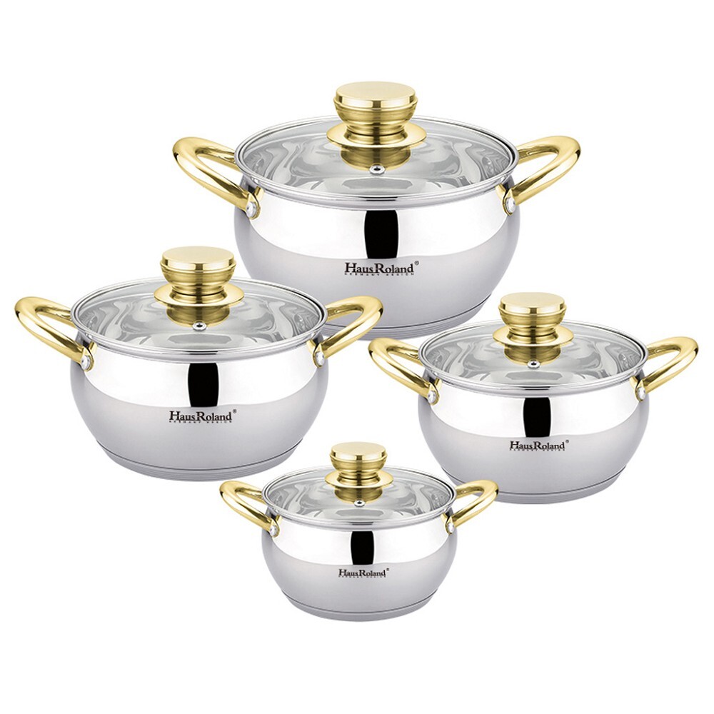HAUS ROLAND sada nerezového nádobí 8 dílná, lesklá s pozlacenými úchyty