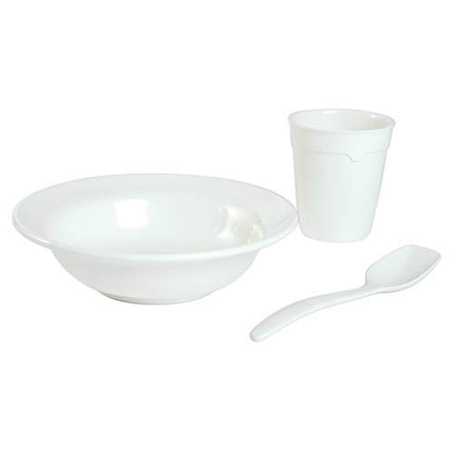 Jídelní plastová souprava pro jednu osobu - talíř, hrnek, lžička. Materiál melamin.
