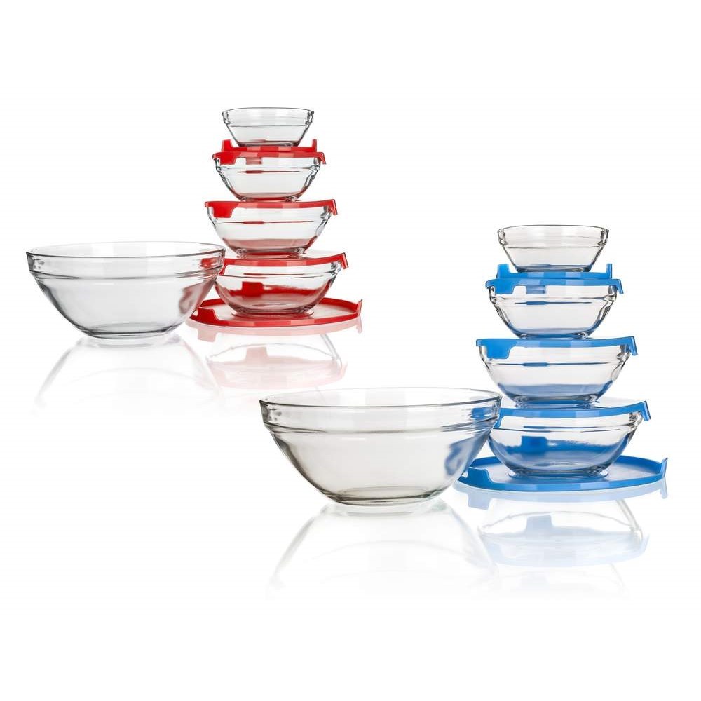 BANQUET Sada skleněných misek BERGAMO, 5 ks, s plastovými víčky
