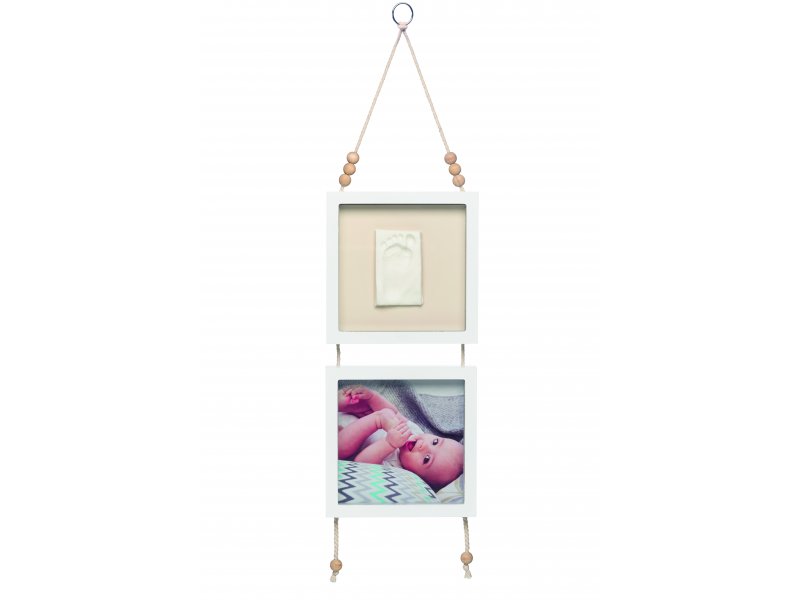 Závěsný rámeček Baby Art Hanging Frame Double nabízí oddělený prostor pro fotografii a otisk ručičky nebo nožičky Vašeho miminka. Vyrobte si krásnou dekoraci, která vám zároveň pomůže uchovat vzpomínky na krásné období po narození vašeho dítěte.