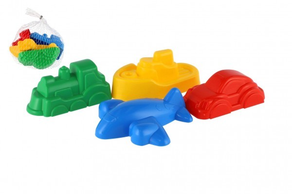 Formičky Bábovky na písek 4ks plast dopravní prostředky v síťce 12m+