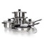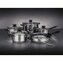 Sada nerezového nádobí SWING Black 10 ks obsahuje: rendlík 16 x 9 cm s poklicí, hrnec 18 x 10,5 cm s poklicí, hrnec 20 x 11,5 cm s poklicí, hrnec 24 x 13,5 cm s poklicí, pánev s nepřilnavým povrchem 24 x 6,5 cm s poklicí. Nádobí lze používat na všechny typy sporáků. Tloušťka dna: 0,38 mm nerez / 0,5 mm hliník / 1 mm železo / 0,5 mm hliník / 0,38 mm indukční protektor. Poklice jsou vyrobeny z odolného skla a mají otvor na páru pro dokonalou kontrolu nad vařením. Povrchová úprava nerezu lesk (uvnitř i vně). Knoby a držadla jsou s barevnou úpravou v černé barvě. Nádobí se snadno udržuje, lze mýt v myčce. Držadla jsou k hrncům našroubovaná.