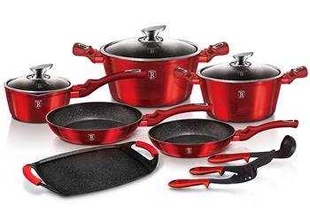 Sada nádobí Berlingerhaus s mramorovým povrchem 12+2 ks Metallic Line Burgundy Edition BH-1695
