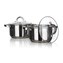 Sada nerezového nádobí SWING Small 4 ks lze používat na všechny typy sporáků. Poklice jsou vyrobeny z odolného skla a mají otvor na páru pro dokonalou kontrolu nad vařením. Povrchová uprava lesklý nerez.