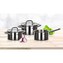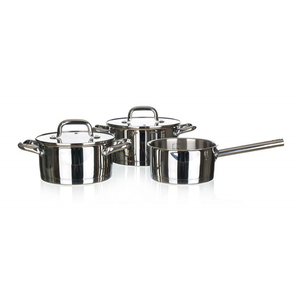 5dílná sada nerezového nádobí EXCELLENT obsahuje:rendlík 18 x 9 cm, 2.3 l bez poklice, kastrol 18 x 9 cm, 2,3 l se skleněnou poklicí, kastrol 20 x 10cm 3,1 l se skleněnou poklicí. Vnější i vnitřní povrchová úprava v lesku, uvnitř hrnců je měrka. Nádobí lze používat na všechny typy varných desek včetně indukce. Nerezová sada hrnců - vynikající poměr cena / kvalita, široká možnost použití, moderní design.
