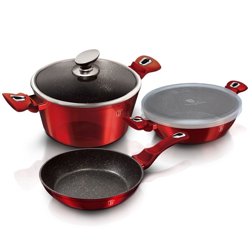 Sada nádobí s mramorovým povrchem 5 ks Burgundy Metallic Line