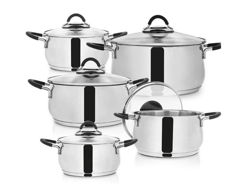 Sada kastrolů se skleněnou poklicí je skvělá pro každou moderní domácnost a je ideální cestou ke zdravé výživě, dietní, ekonomické a estetické přípravě pokrmů. Naakumulovaná energie předává teplo dále do nádoby - tepelný zdroj vypínáme v předstihu. Materiál: vysoce kvalitní nerezová ocel třídy 304, sklo, silikon - úchyty. Kastroly jsou vhodné na všechny typy spotřebičů včetně indukce, do trouby pouze bez poklice do 200 °C. Vhodné i do myčky nádobí. Rozměry: objem 1,8 l, pr. 16 cm, v. 9/15 cm, objem 2,6 l, pr. 18 cm, v. 10/15 cm, objem 3,7 l, pr. 20 cm, v. 12/17 cm, objem 4 l, pr. 22 cm, v. 10,5/16 cm a objem 5,3 l, pr. 24 cm, v. 12/18 cm.