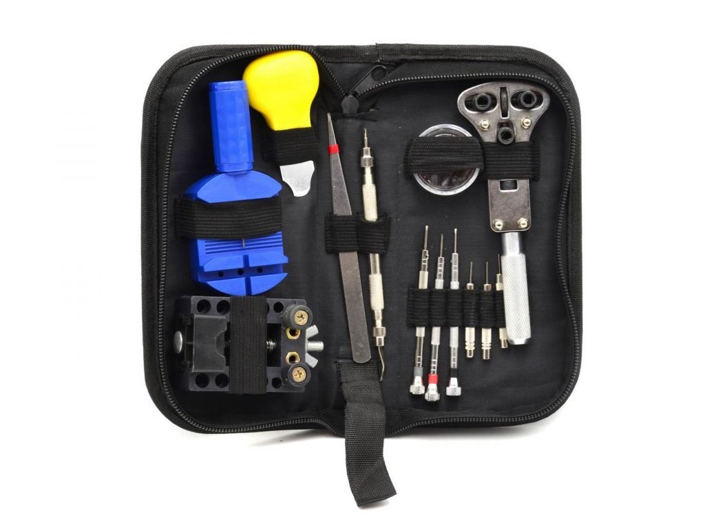 Sada hodinářských nástrojů GEKOTato praktická sada nářadí, umístěná v černém textilním pouzdře, obsahuje základní nástroje pro opravu hodinek a zkracování řemínků.Sada obsahuje:Nerezová ocelová pinzeta: 5 1/4 "Nástroj pro oddělení pásku od ciferníkuZkracovač páskůOtevírač pouzderDržák...