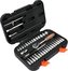 Gola sada STHOR TO-58640 38ks Gola sada 1/4" obsahuje 38ks: nástavce a ráčnu s plastovou rukojetí. Vyrobené z kvalitní oceli s funkcí AS-DRIVE. Funkce AS-DRIVE umožňuje vyvinout větší kontaktní sílu, neboť ke kontaktu se šroubem nedochází na hranách šestihranu, nýbrž v první třetině styčných ploch. Tím nedochází k poničení hlavice šroubu. Ořech mnohdy povolí i matice a šrouby již poničené. Sada je přehledně uložena v praktickém kufříku.