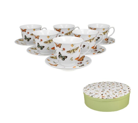 6 filiżanek ze spodkami BUTTERFLIES