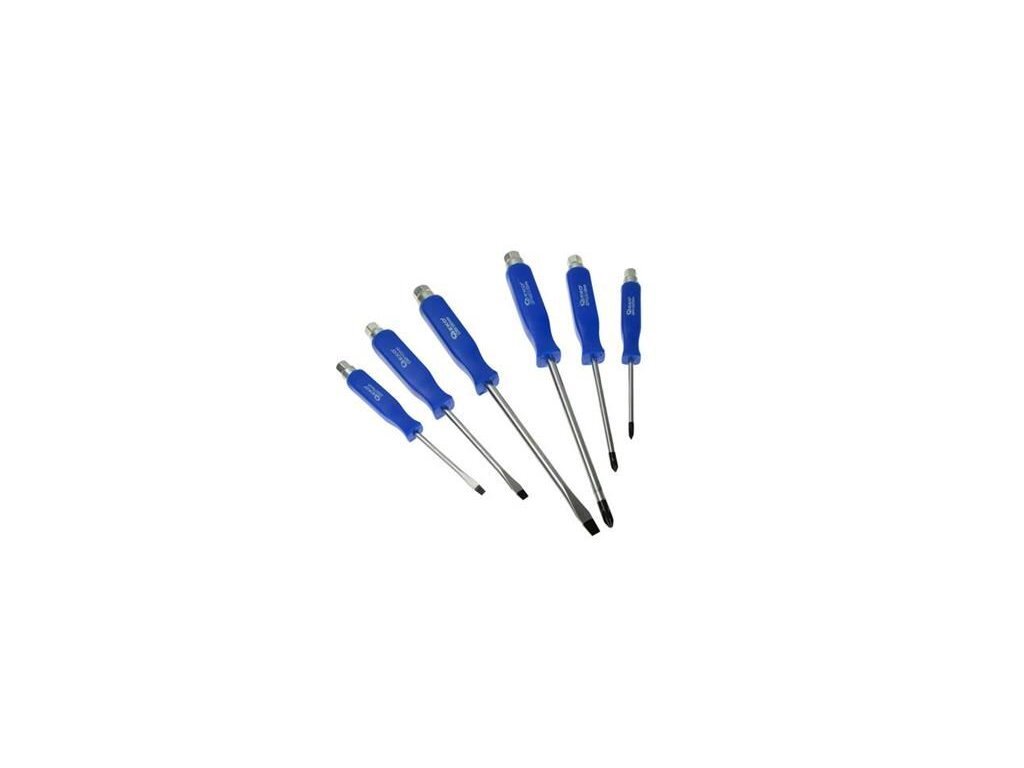 Sada úderových šroubováků 6ks, CrV GEKOSada obsahuje 6 ks úderových šroubováků vyrobených z chrom-vanadové oceli (CrV). Hrot šroubováku prochází celou délkou rukojeti šroubováku a je ukončen v jeho horní části vnějším šestihranem, díky čemuž můžete šroubovák utahovat klíčem nebo po něm můžete...