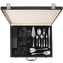 Sada luxusních nerezových příborů PROFISIMO v kufříku. Sada 39 ks. Moderní jednoduchý tvar, hladký povrch. Materiál: kvalitní nerezová ocel, kufřík - dřevo, plast. Příbory lze mýt v myčce na nádobí, ale pokud chcete zachovat neporušený povrch, pak to vzhledem k působení čistících prostředků nedoporučujeme. Rozměry: 6x lžička moca - d. 11,5 cm, 6x lžička čajová - d. 14 cm, 6x vidlička dezertní - d. 14,5 cm, 6x lžíce - d. 19,5 cm, 6x vidlička - d. 20 cm, 6x nůž - d. 23 cm, 1x lopatka na dort - d. 22 cm, vidlička a lžíce na salát - d. 20 cm, kufřík 45x35x6,5 cm.
