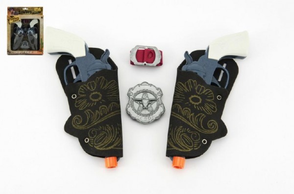 Pistole s pouzdrem 2ks kovbojská sada plast 16cm 2ks s doplňky v krabici
