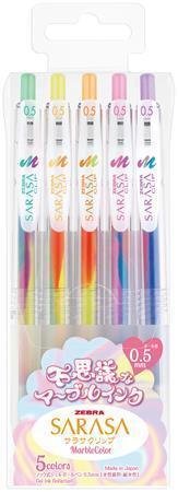 Sada gelových per "Sarasa Clip Marble", 3v1, 5ks, 0,33 mm, stiskací, ZEBRA 16920