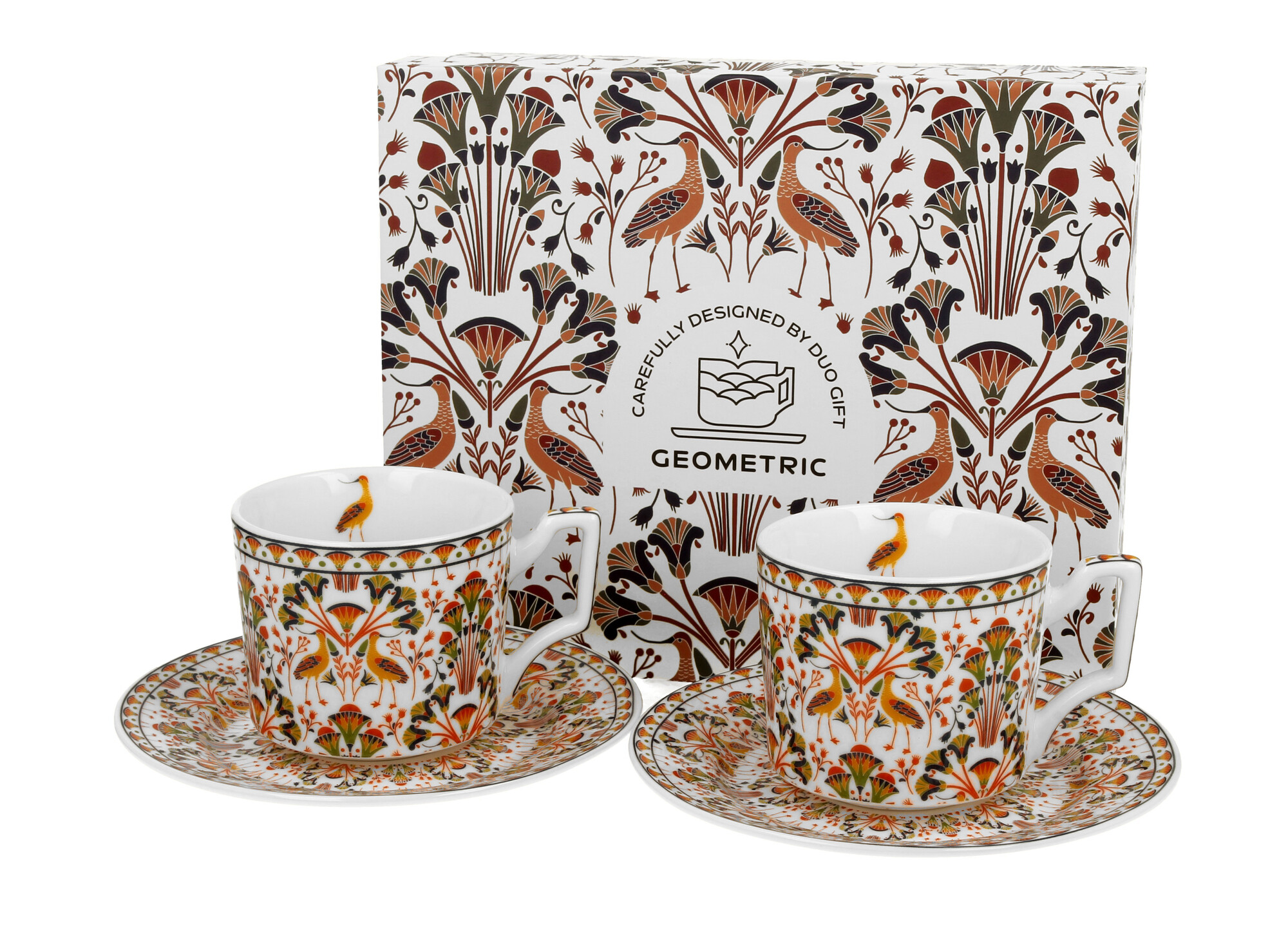 Komplet dwóch filiżanek espresso ze spodkami HERON wchodząca w skład serii GEOMETRIC, wykonany z porcelany New Bone China, charakteryzującej się elegancką i naturalną kremowo - białą barwą z delikatnym połyskiem, a także wyjątkową wytrzymałością.