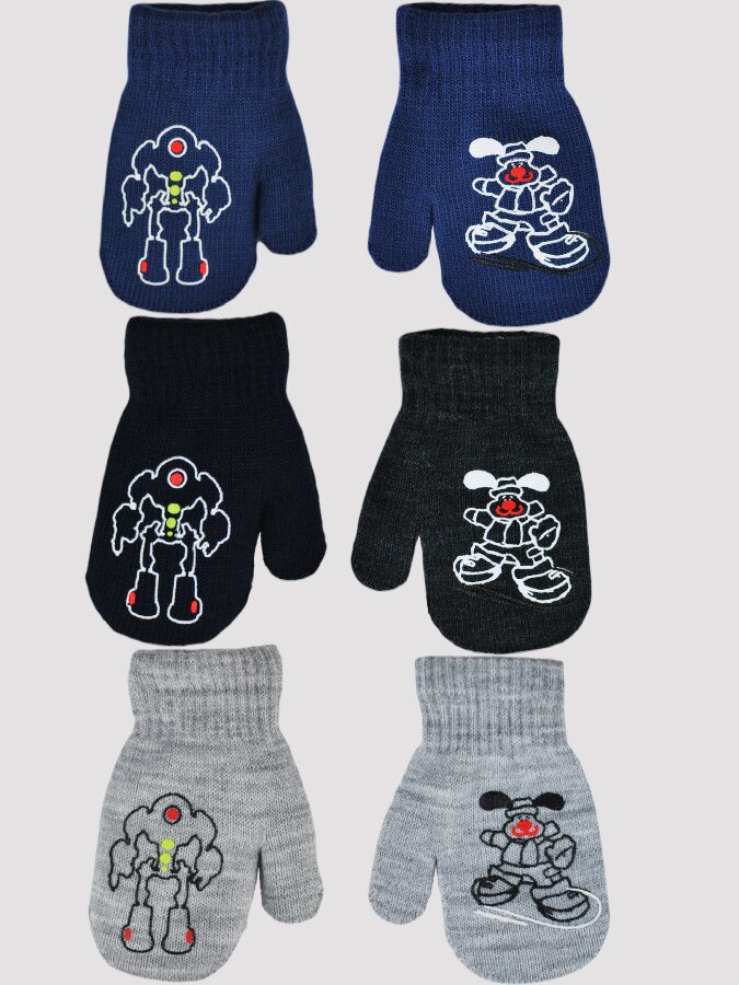 NOVITI RZ034-B-01 Rękawiczki chłopięce 1p akryl ABS sznurek podwójne 12