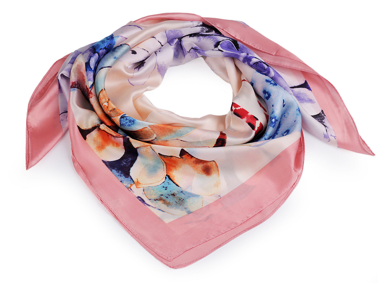 Saténový šátek 90x90 cm - 1 ks - 2 růžová sv.