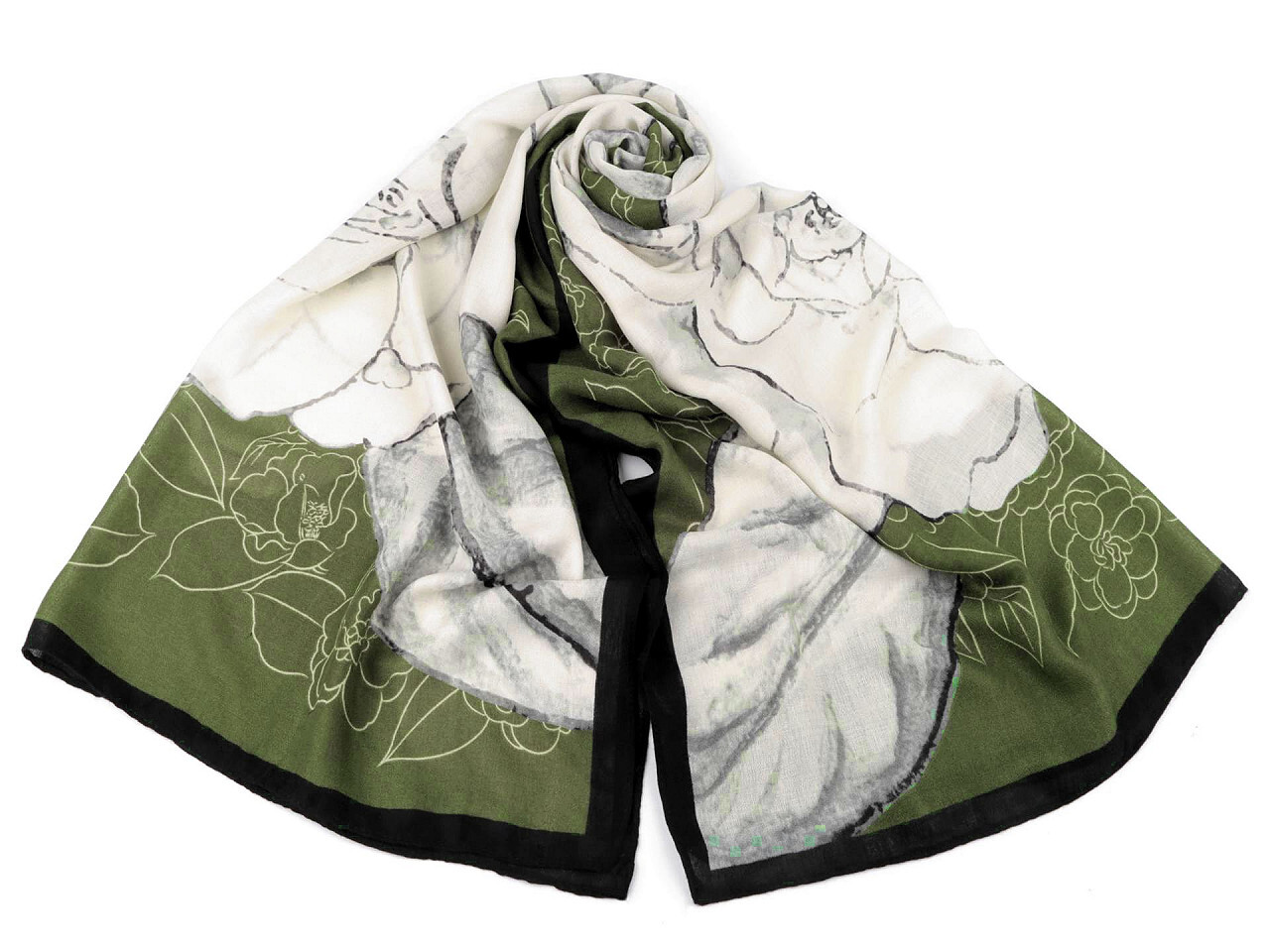 Šátek / šála s květy 80x180 cm - 1 ks - 1 zelená