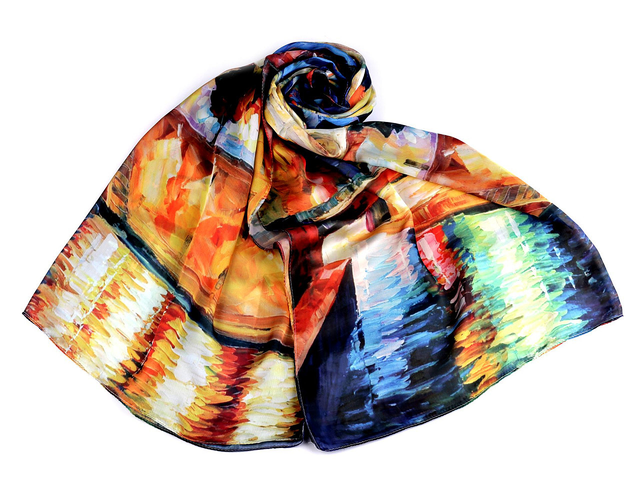 Jemná vzorovaná šála je lehounká a měkká, vyrobená z příjemného, chladivého materiálu. Její vzor je inspirovaný malbou slavných obrazů. Využijete ji do společnosti i na všední nošení ke kabátu, saku, halence, svetříku, šatům apod.