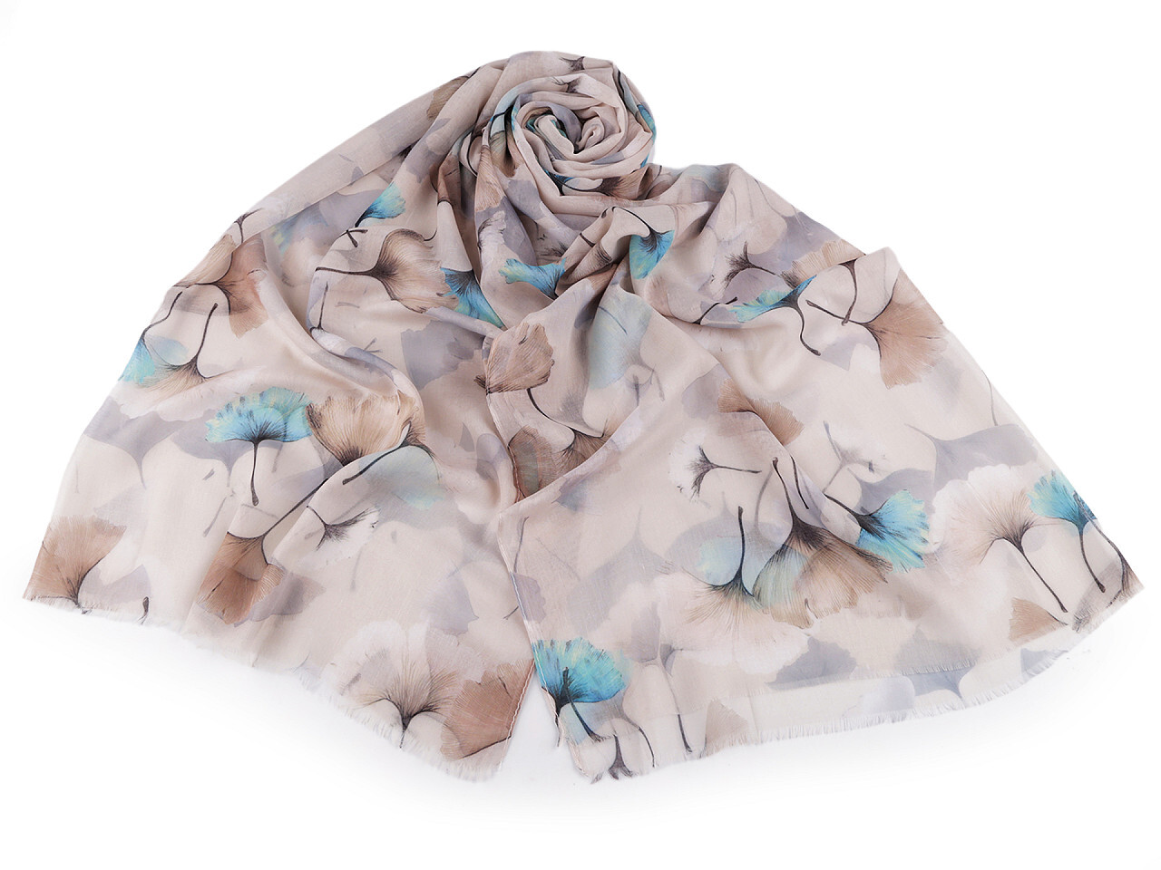 Letní šátek / šála ginkgo 75x180 cm - 1 ks - 2 béžová světlá
