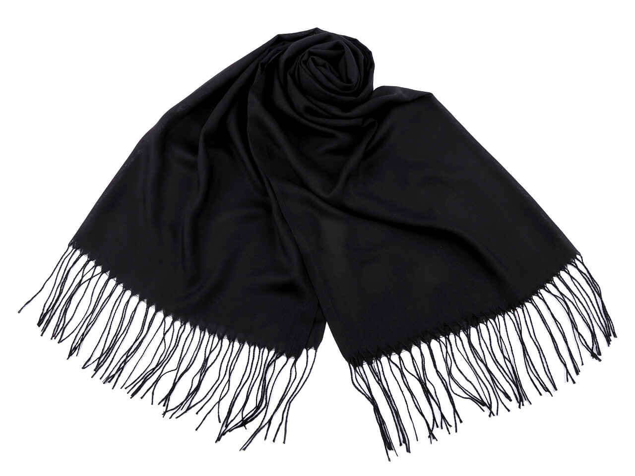 Šátek / šála jednobarevná s třásněmi 70x165 cm - 1 ks - 11 černá