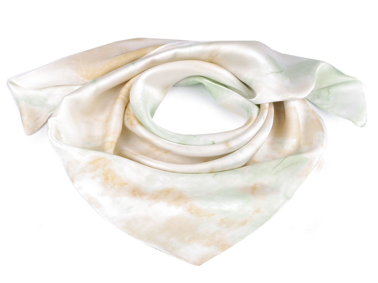 Saténový šátek batikovaný 70x70 cm - 1 ks - 1 zelená past.sv.