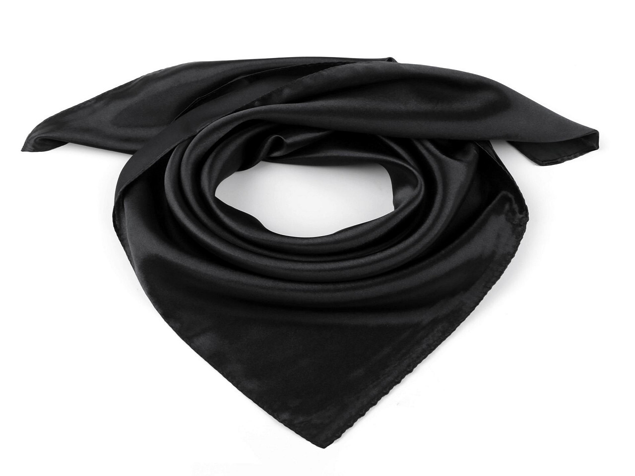 Saténový šátek jednobarevný 60x60 cm - 1 ks - 10 černá