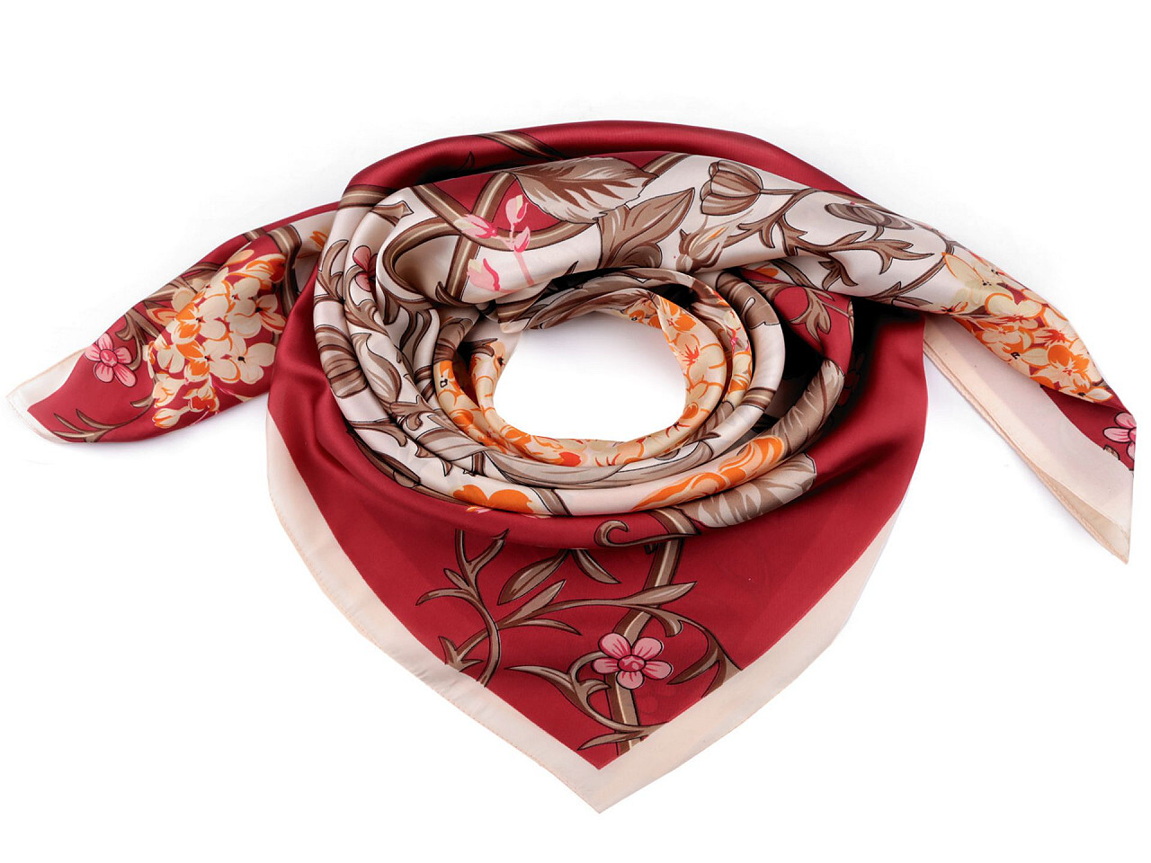 Saténový šátek 90x90 cm - 1 ks - 3 červená tmavá