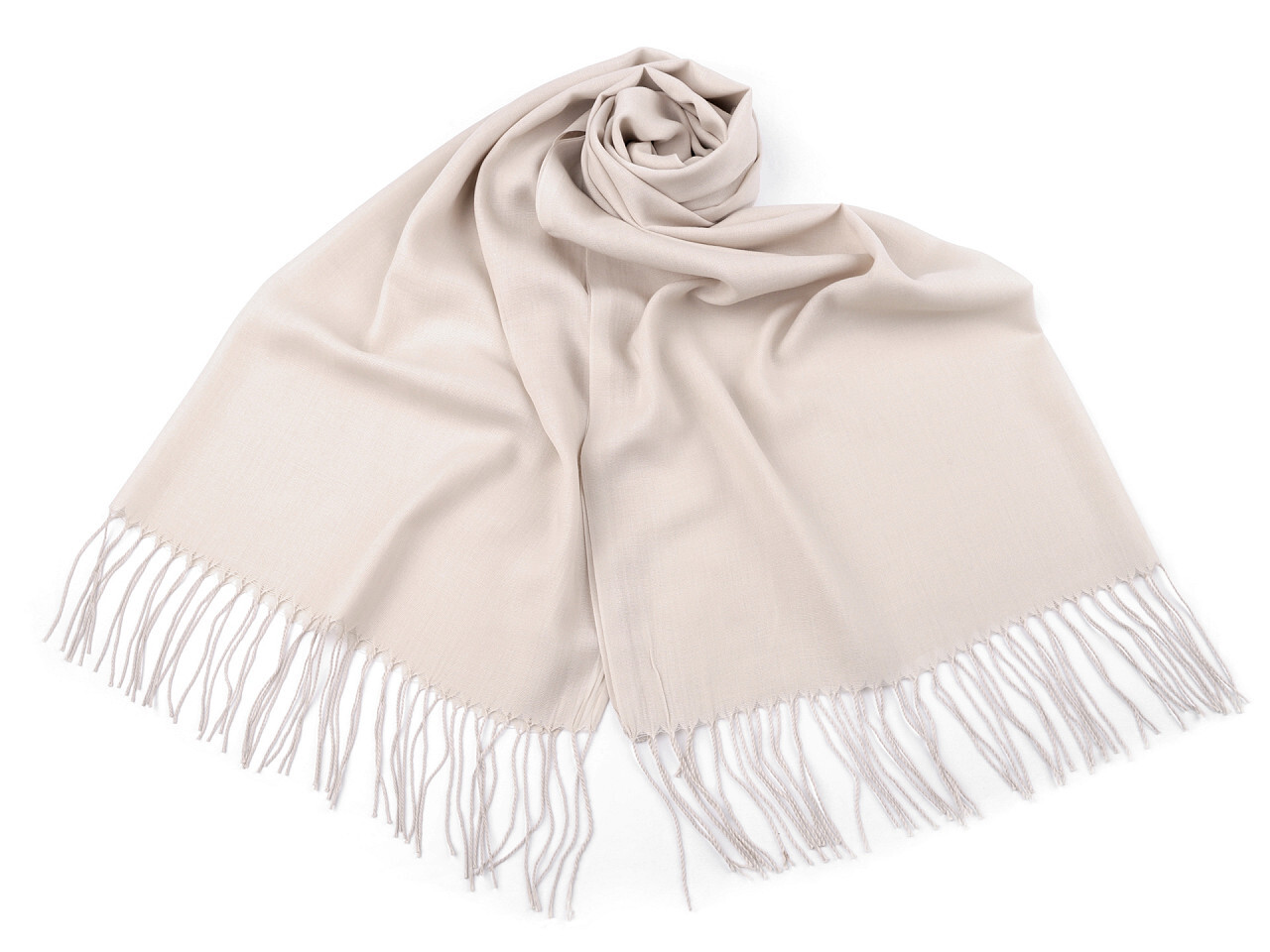Šátek / šála jednobarevná s třásněmi 70x165 cm - 1 ks - 3 béžová světlá