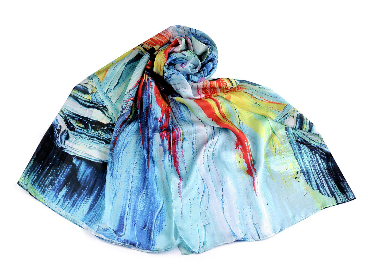 Jemná vzorovaná šála je lehounká a měkká, vyrobená z příjemného, chladivého materiálu. Její vzor je inspirovaný malbou slavných obrazů. Využijete ji do společnosti i na všední nošení ke kabátu, saku, halence, svetříku, šatům apod.