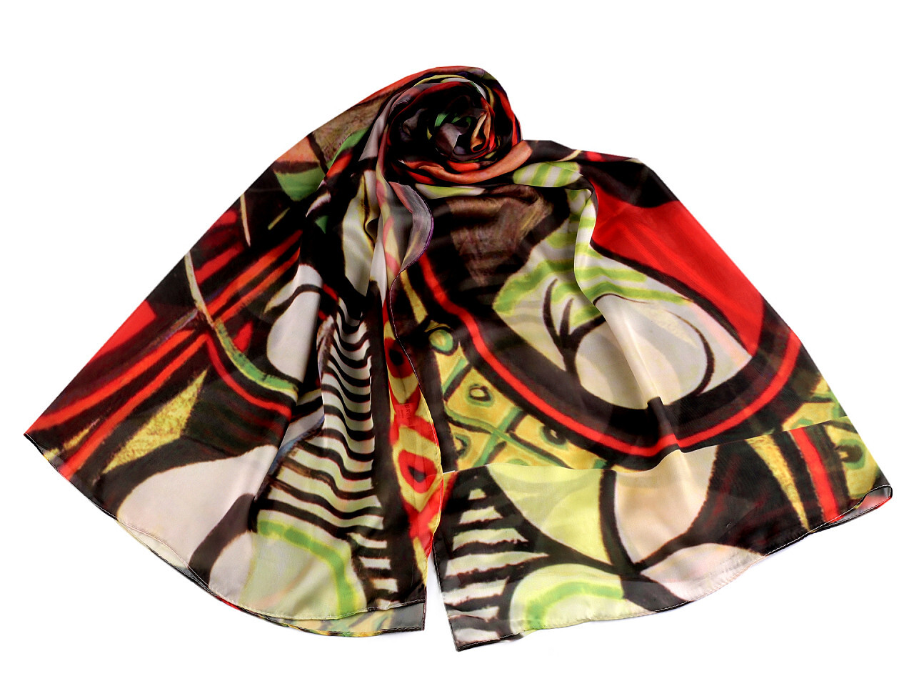Jemná vzorovaná šála je lehounká a měkká, vyrobená z příjemného, chladivého materiálu. Její vzor je inspirovaný malbou slavných obrazů. Využijete ji do společnosti i na všední nošení ke kabátu, saku, halence, svetříku, šatům apod.