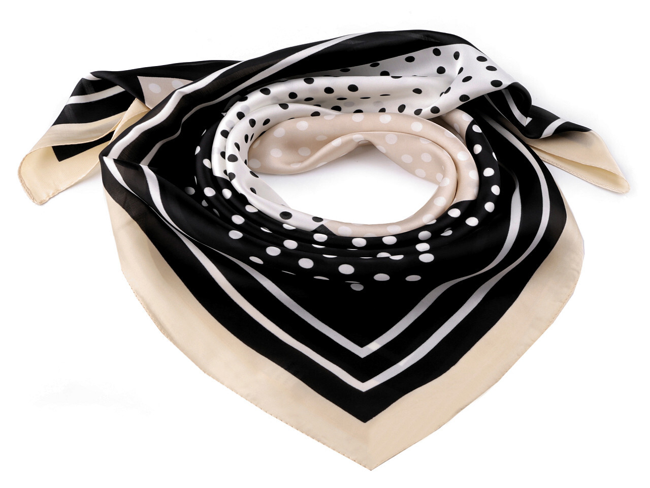 Saténový šátek puntík 70x70 cm - 1 ks - 2 černá