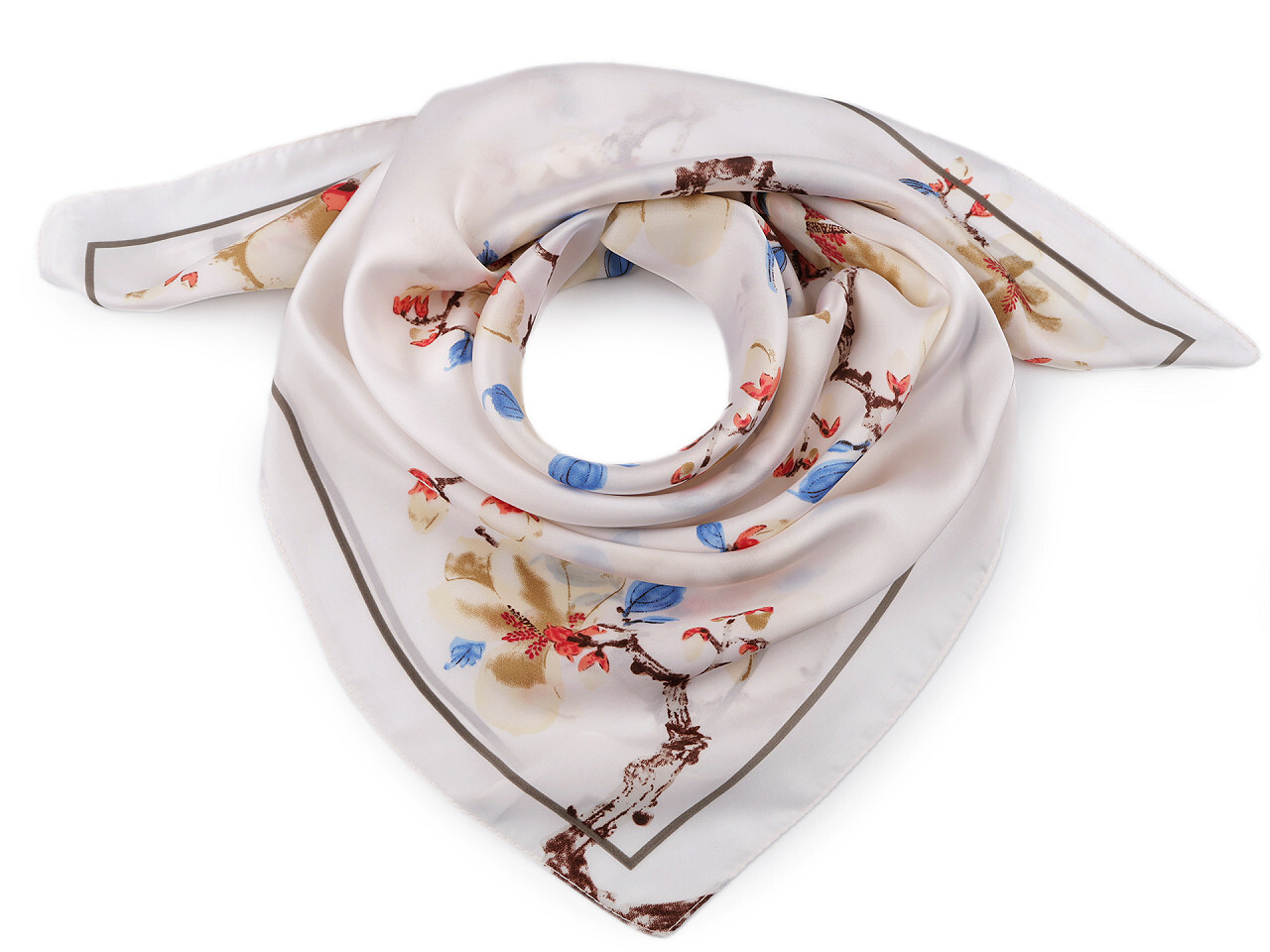 Saténový šátek magnolie 70x70 cm - 1 ks - 1 bílá