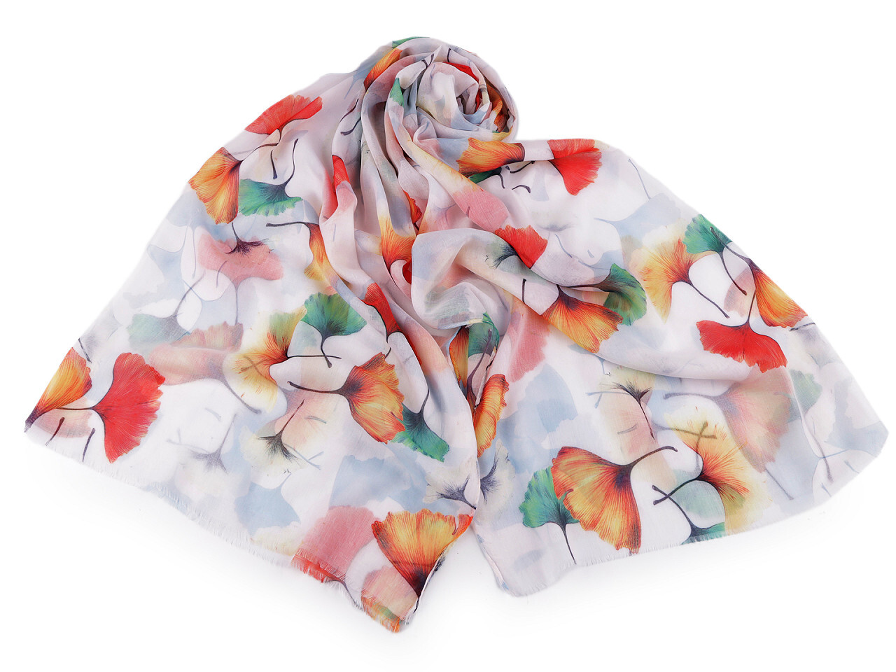 Letní šátek / šála ginkgo 75x180 cm - 1 ks - 1 bílá