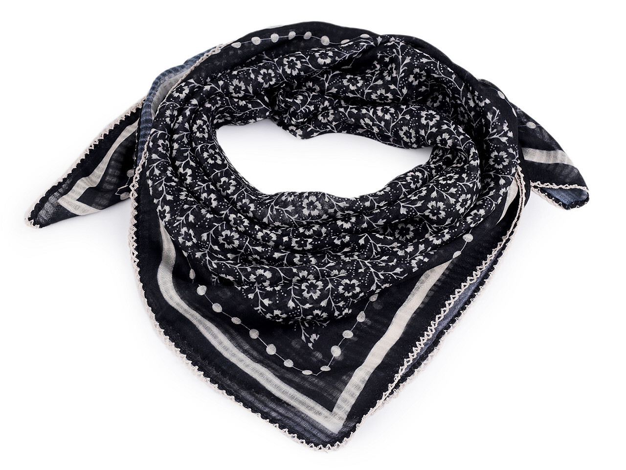 Šátek s květy a háčkovaným okrajem 85x85 cm - 1 ks - 4 modrá tmavá