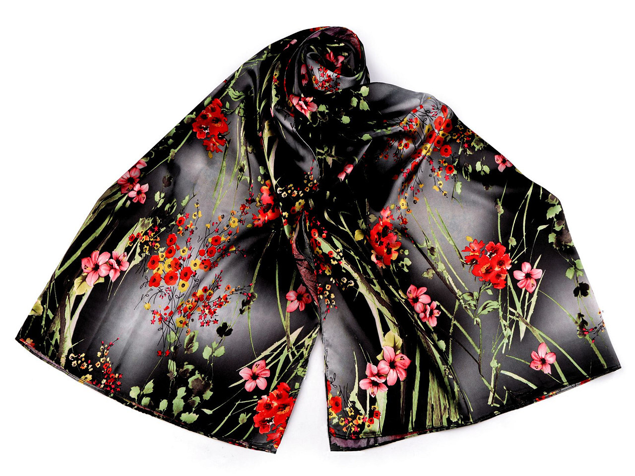 Luxusní saténová šála je zcela unikátní, protože má na přední i zadní straně úplně odlišný vzor. Na jedné straně jsou například květy růží a na zadní mohou být listy v podzimní barvách. Mimoto je lehounká a měkká, na dotek připomíná hedvábí. Využijete ji do společnosti i na všední nošení ke kabátu, saku, halence, svetříku, šatům apod.
