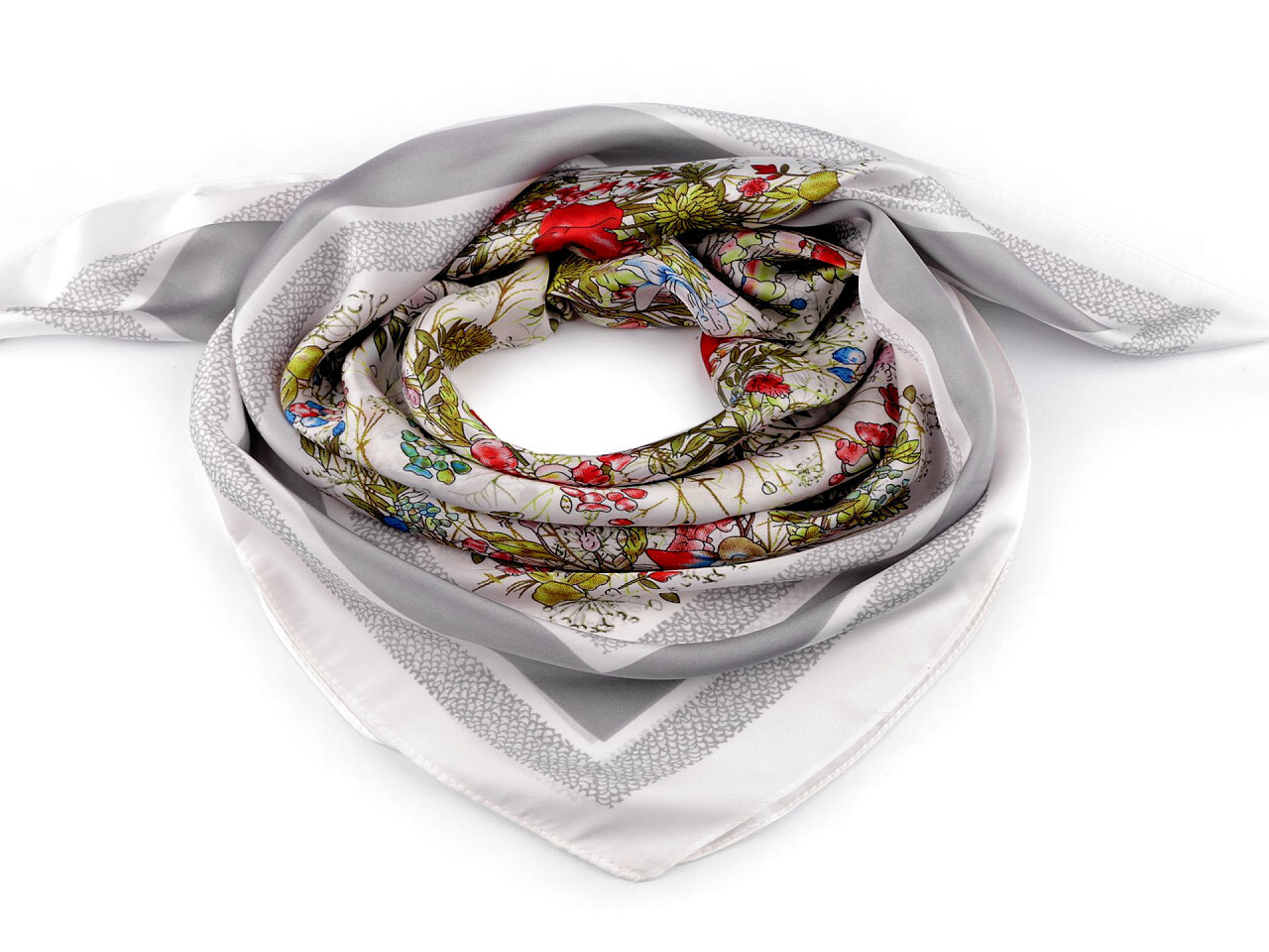 Saténový šátek luční květy 70x70 cm - 1 ks - 5 šedá světlá