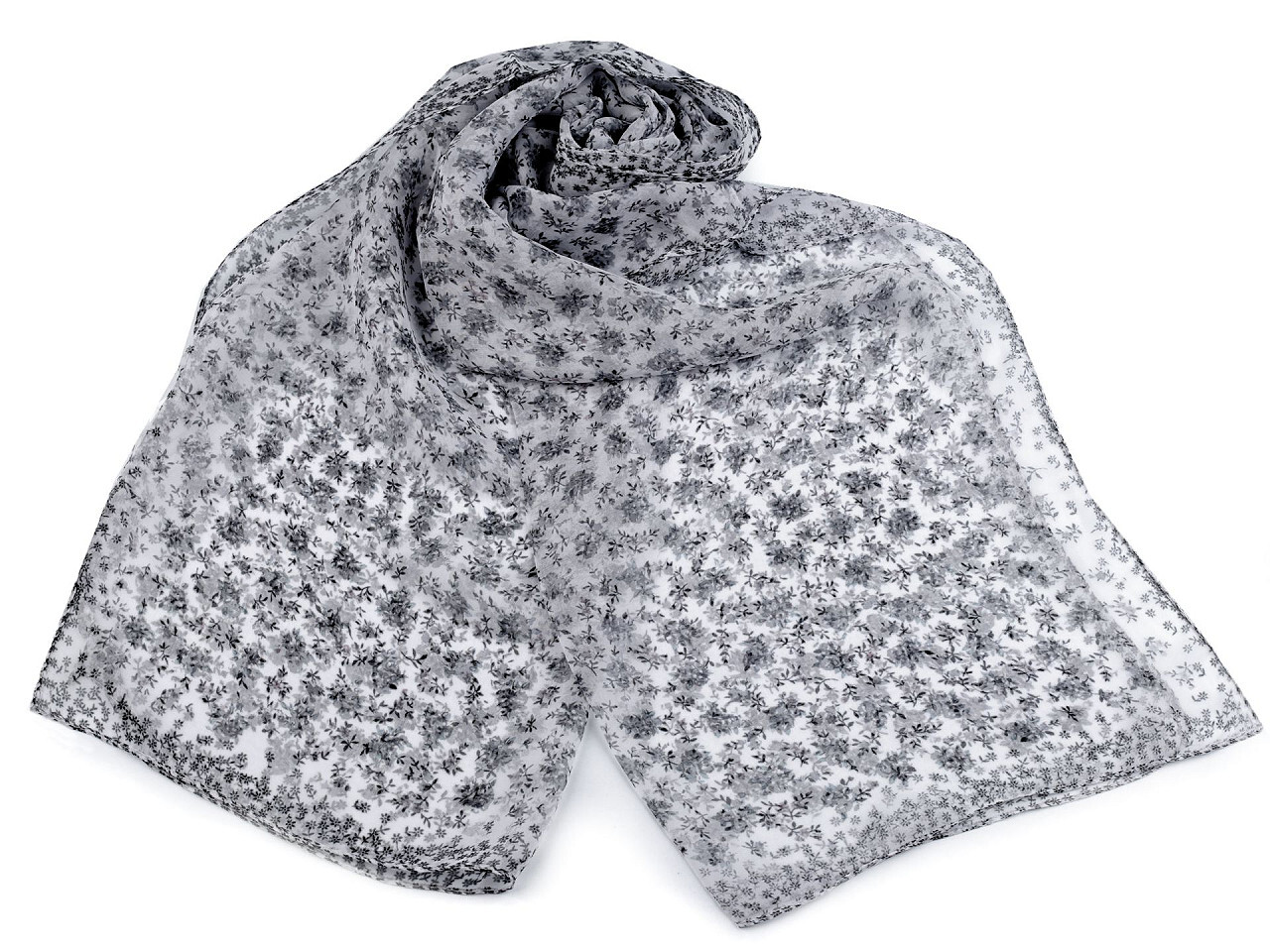 Letní šátek / šála 50x160 cm - 1 ks - 5 bílá šedá