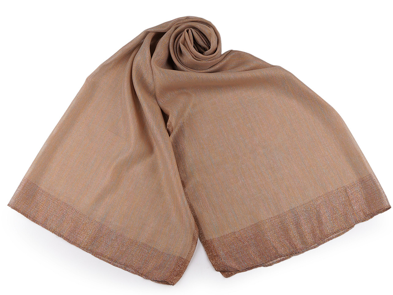 Šátek / šála s lurexem 75x190 cm - 1 ks - 2 béžová
