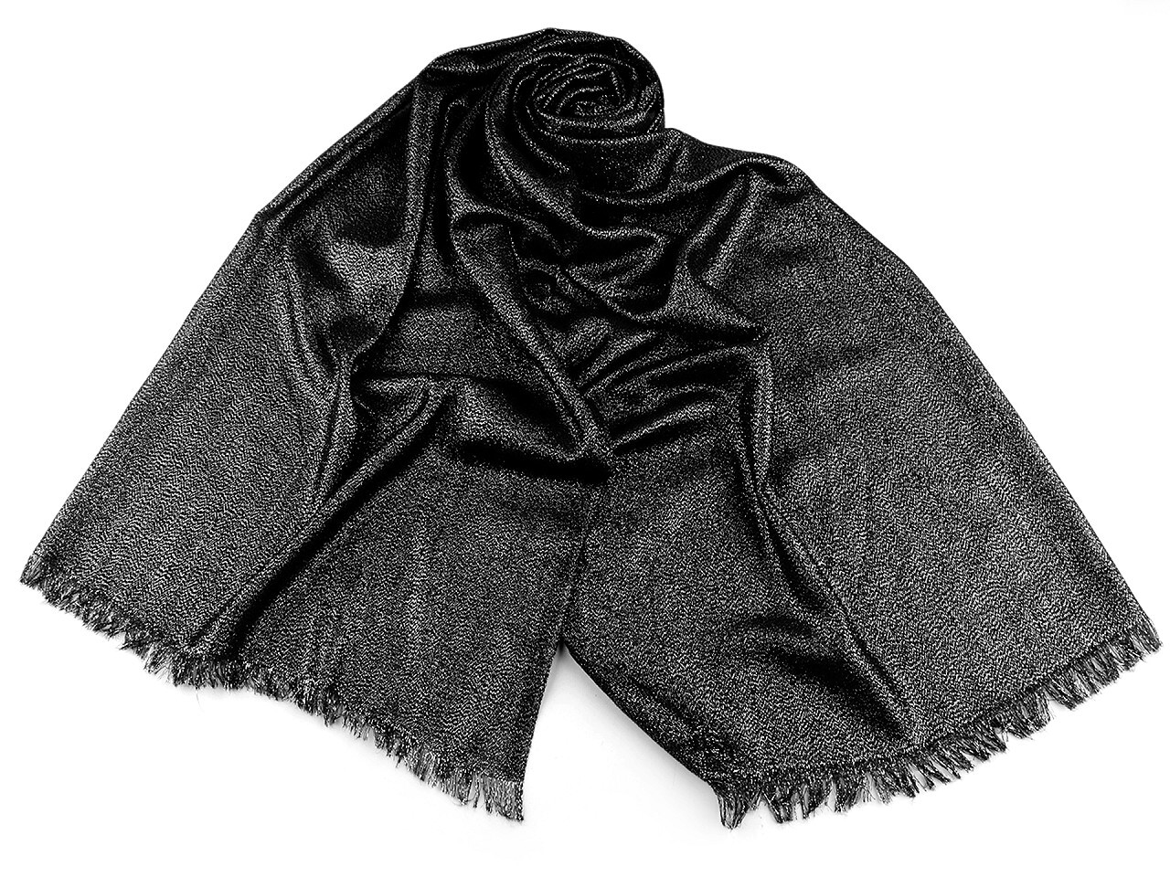 Velký dámský šátek s lurexem je univerzálním módním doplňkem. Můžete ho nosit do práce i do společnosti, jeho elegantní vzhled váš outfit dokonale doladí. Využijete ho celoročně. Šátek je oboustranný, jeho materiál je velice jemný a příjemný na dotek. Na koncích je zakončený třásněmi dlouhými 2 cm. Přidejte do svého šatníku tento unikátní kousek, který podtrhne váš osobitý styl.