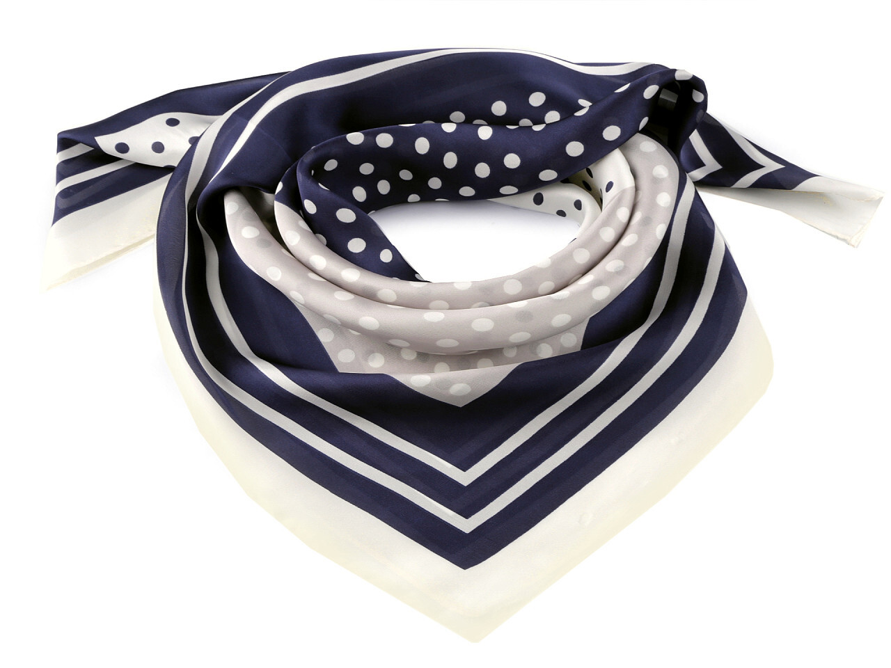 Saténový šátek puntík 70x70 cm - 1 ks - 1 modrá tmavá