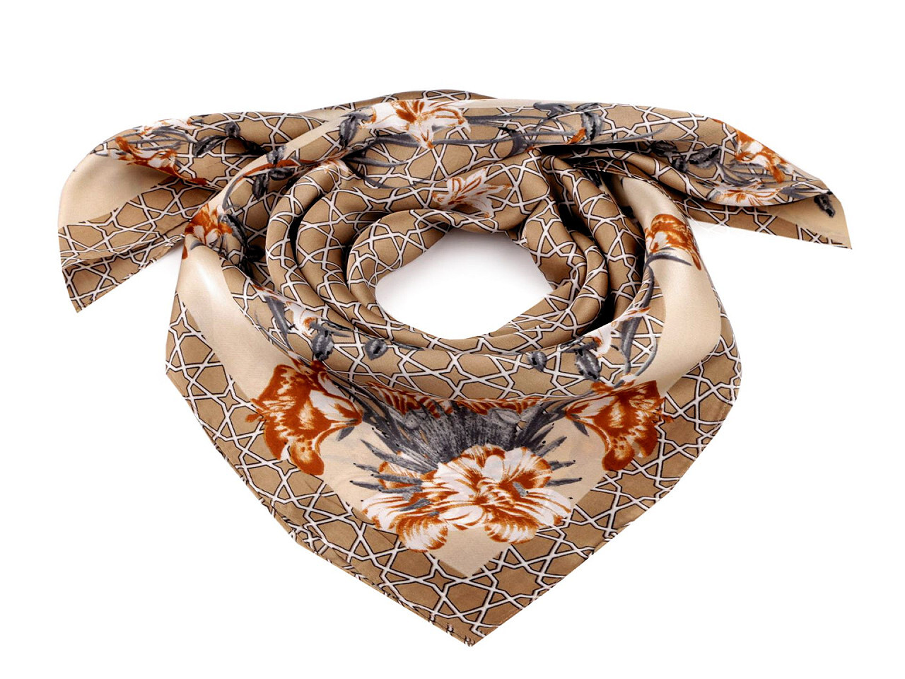 Saténový šátek 70x70 cm - 1 ks - 2 béžová