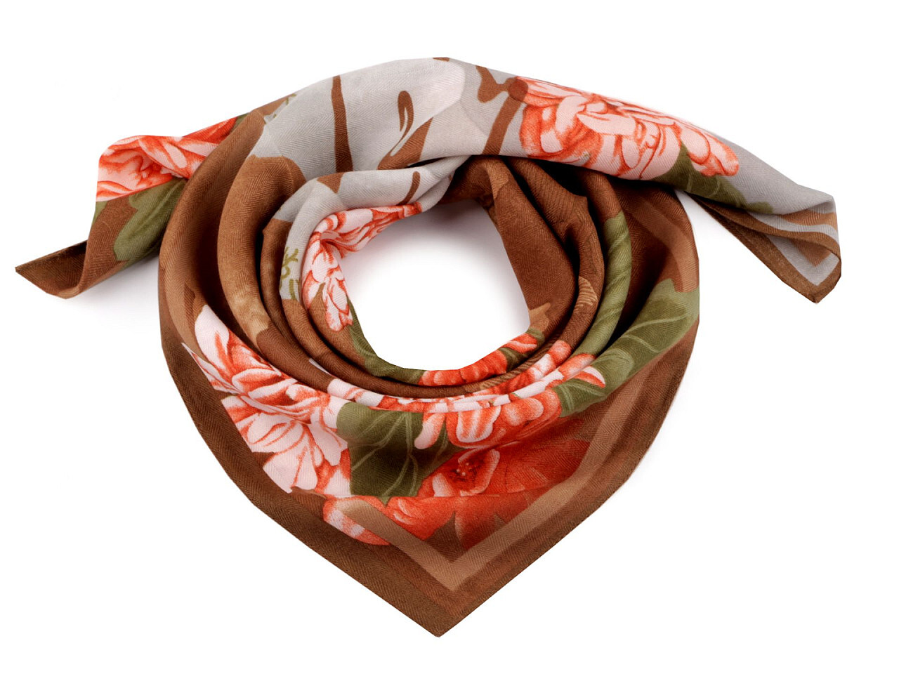Šátek květy 65x65 cm - 1 ks - 2 béžová tmavá oranžová