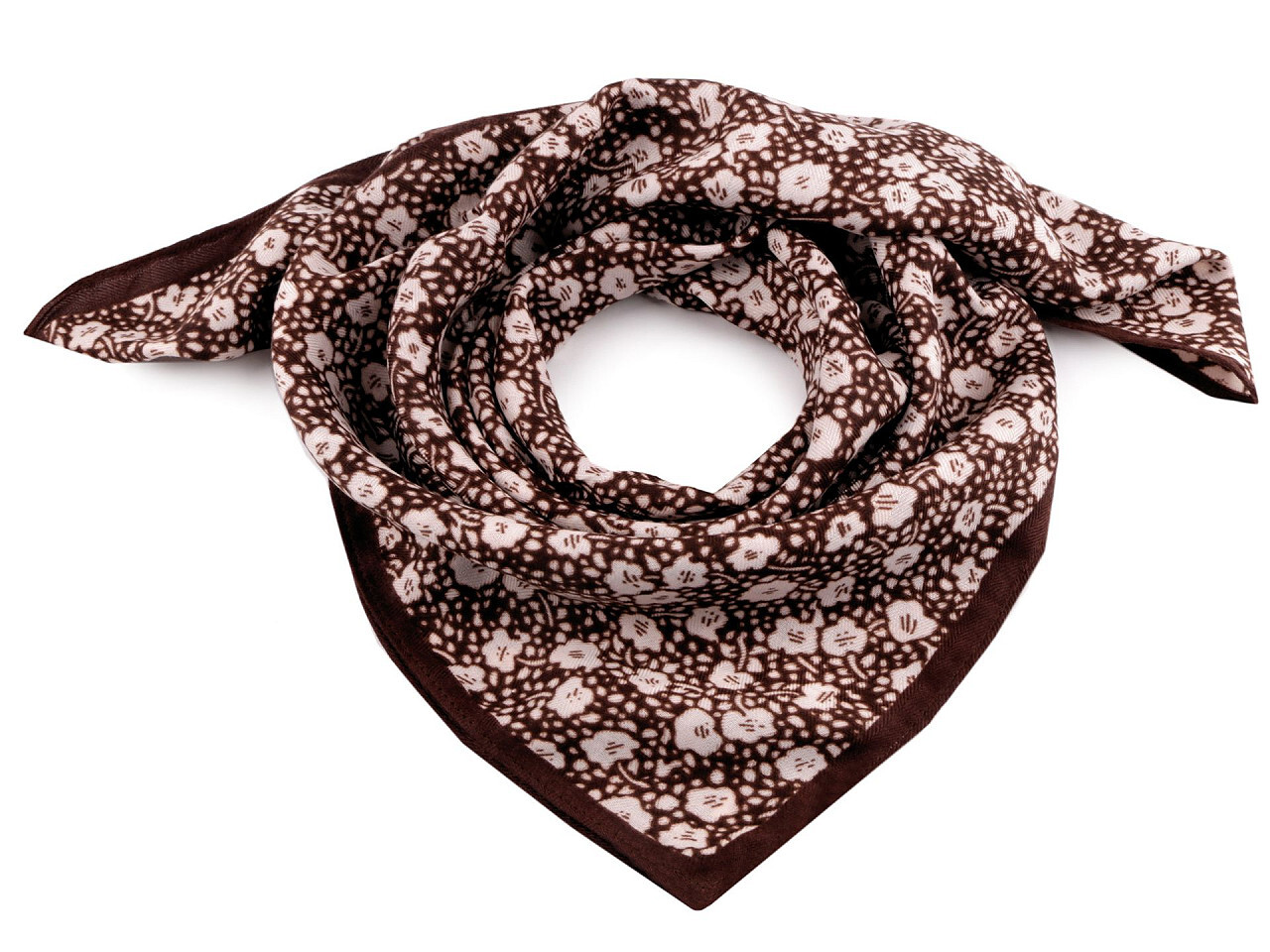 Šátek květy 65x65 cm - 1 ks - 2 hnědá hnědá