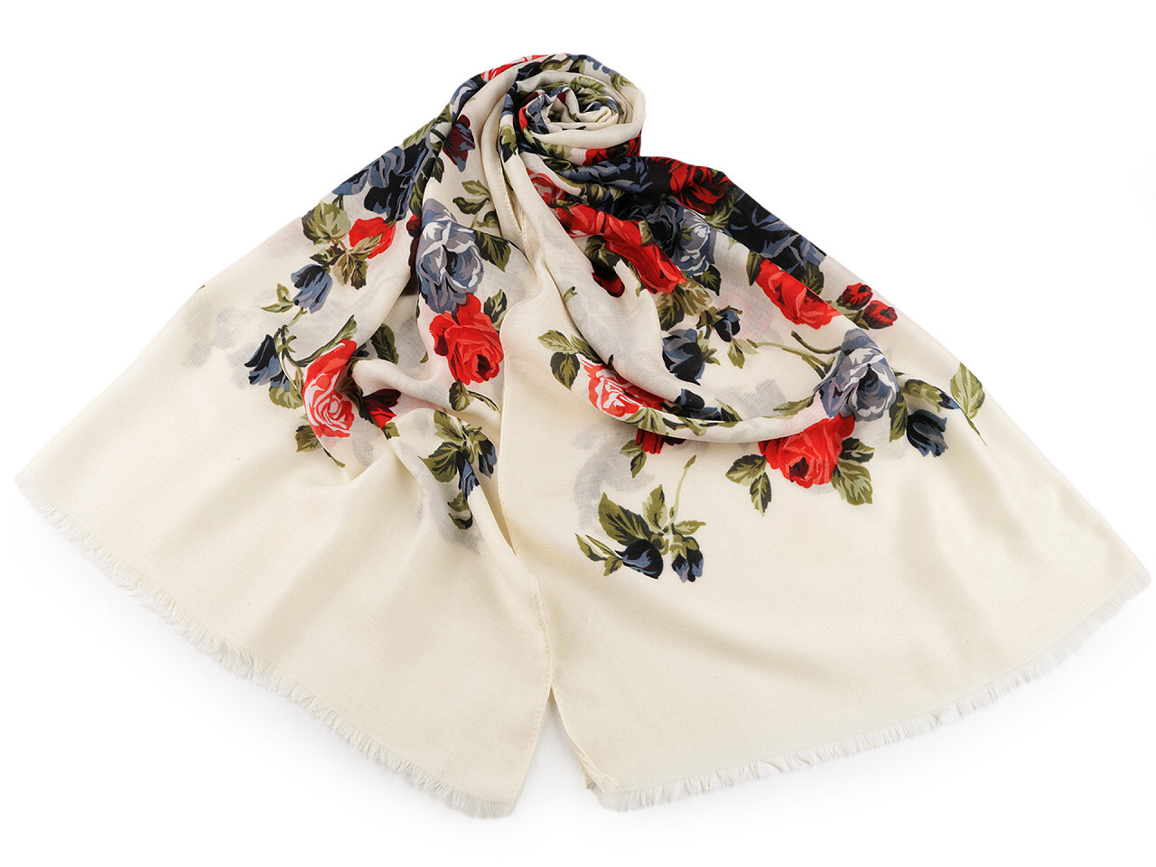 Šátek / šála / pléd růže 80x175 cm - 1 ks - 1 krémová světlá
