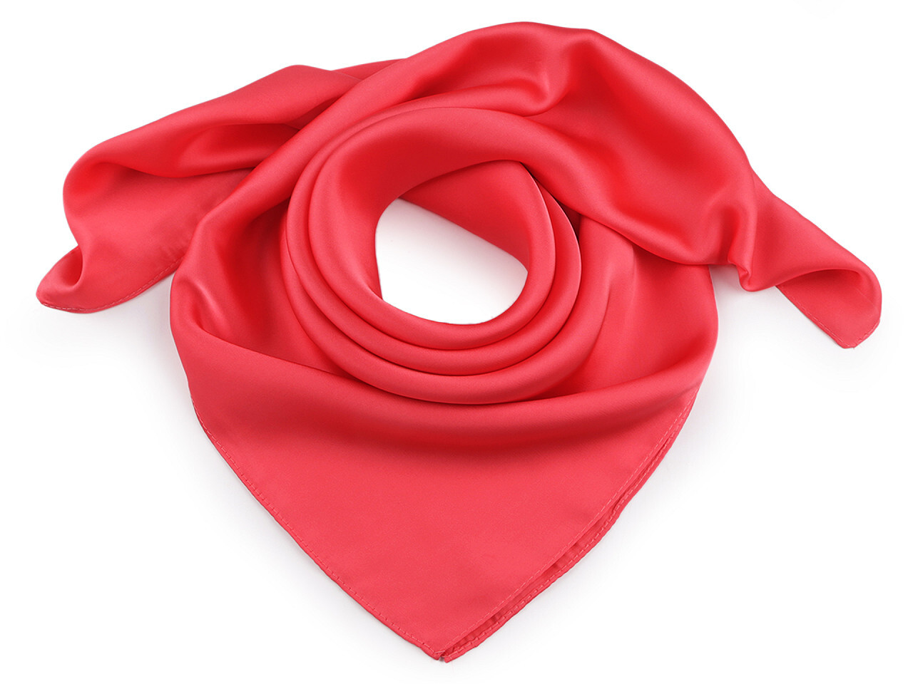 Saténový šátek jednobarevný 70x70 cm - 1 ks - 5 růžová korálová