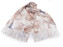 Šátek s motivem velkých květů kosatců je vzdušný a lehký, velice příjemný na dotek. Bude elegantním doplňkem pro každou příležitost. Je jemně průsvitný, na koncích má třásně. Doladí váš outfit, ať už si vezmete sako, halenku, svetřík či šaty.