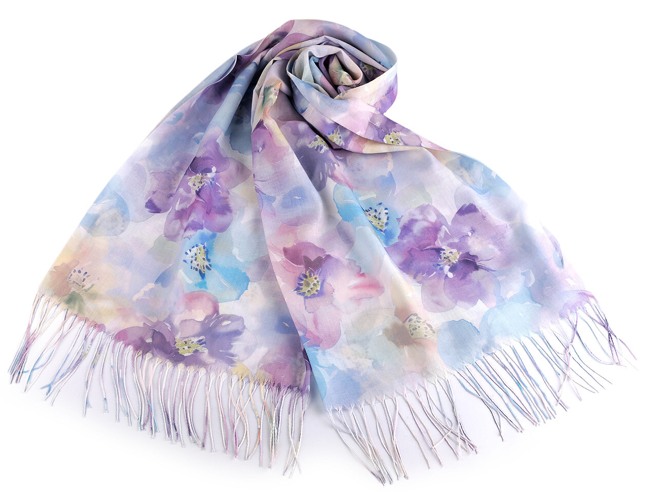 Letní šátek / šála s třásněmi květy 70x180 cm - 1 ks - 6 fialová modrá světlá