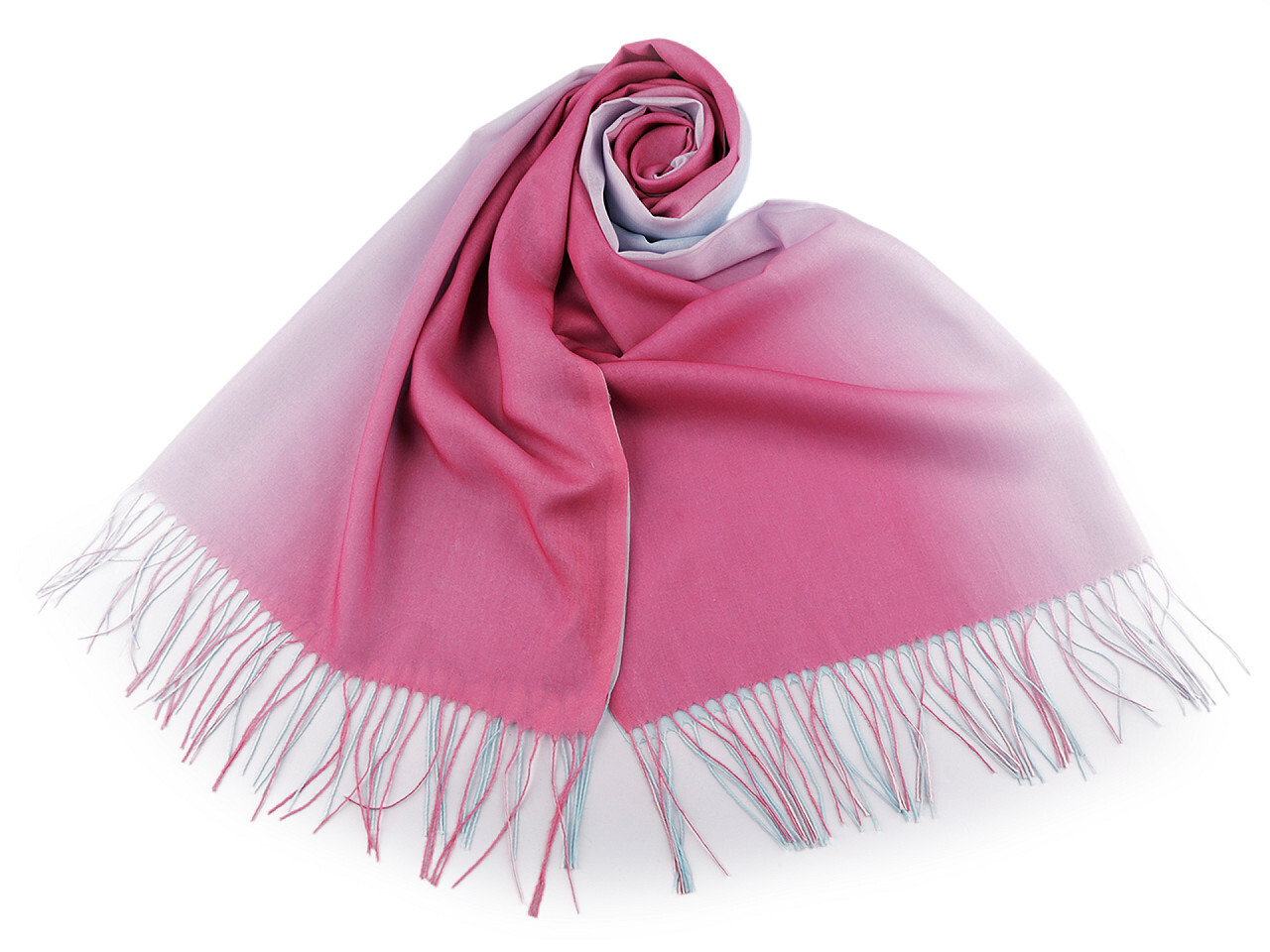Letní šátek / šála s třásněmi ombré 70x180 cm - 1 ks - 10 mint růžová