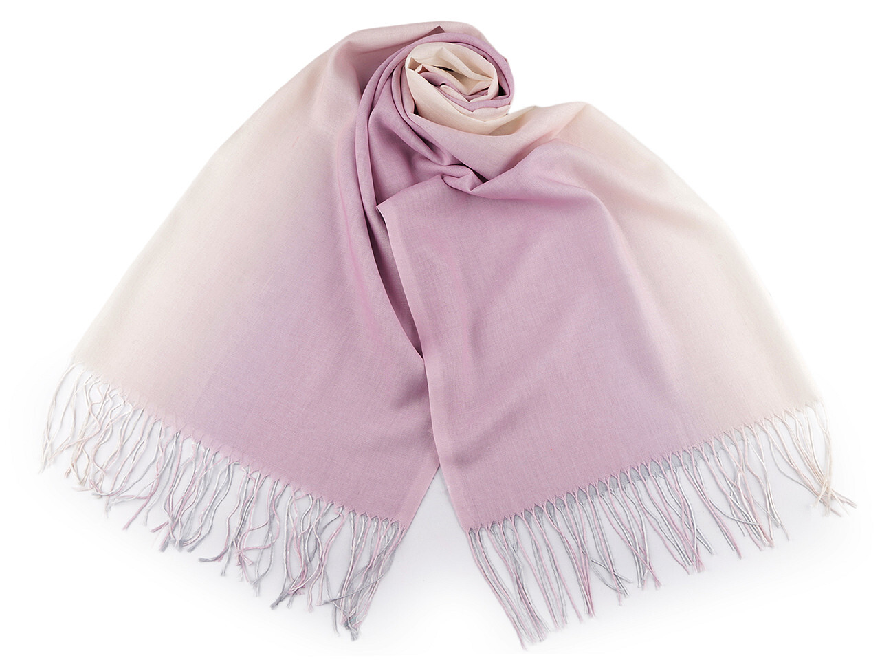 Letní šátek / šála s třásněmi ombré 70x180 cm - 1 ks - 2 šedá světlá fialová